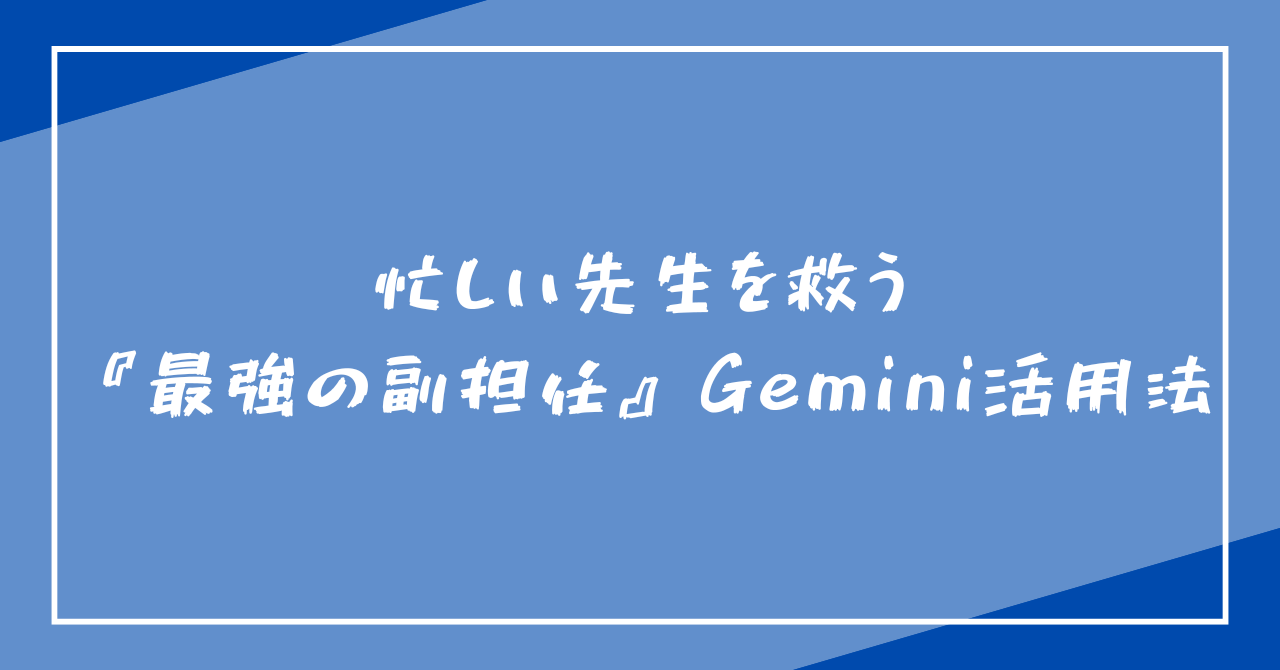 Geminiという「優秀な副担任」を味方につけ、子どもたちと向き合う時間を増やしていきましょう。